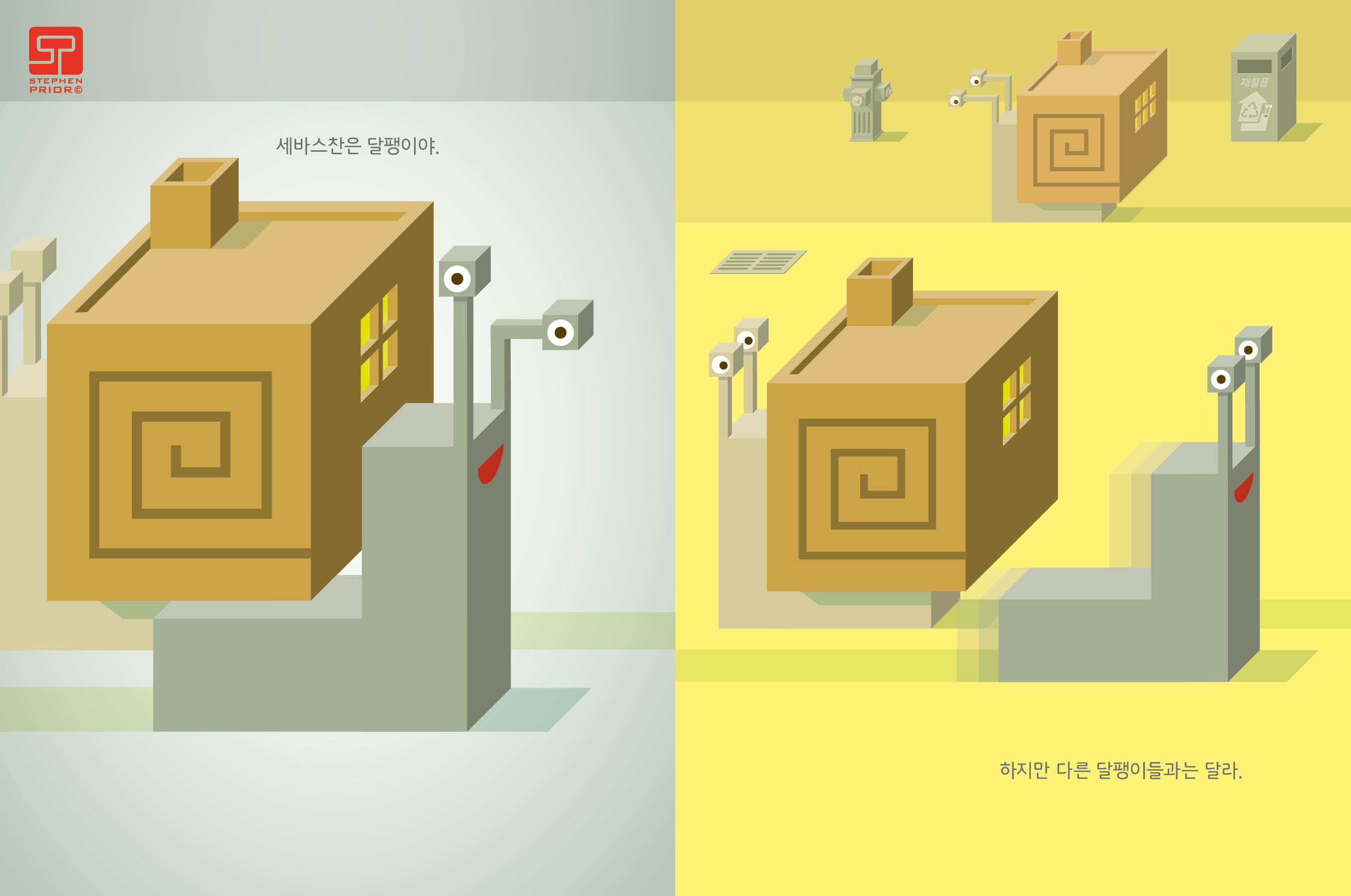 Sebastian is a snail without a shell. In his search for the perfect home, he accidentally steals everything from a birdhouse to an entire apartment building. When he finally meets someone just like him, Sebastian discovers what home really means. Sebastian, That Is Not Your House! blends visual comedy with a gentle message about identity and self-acceptance.